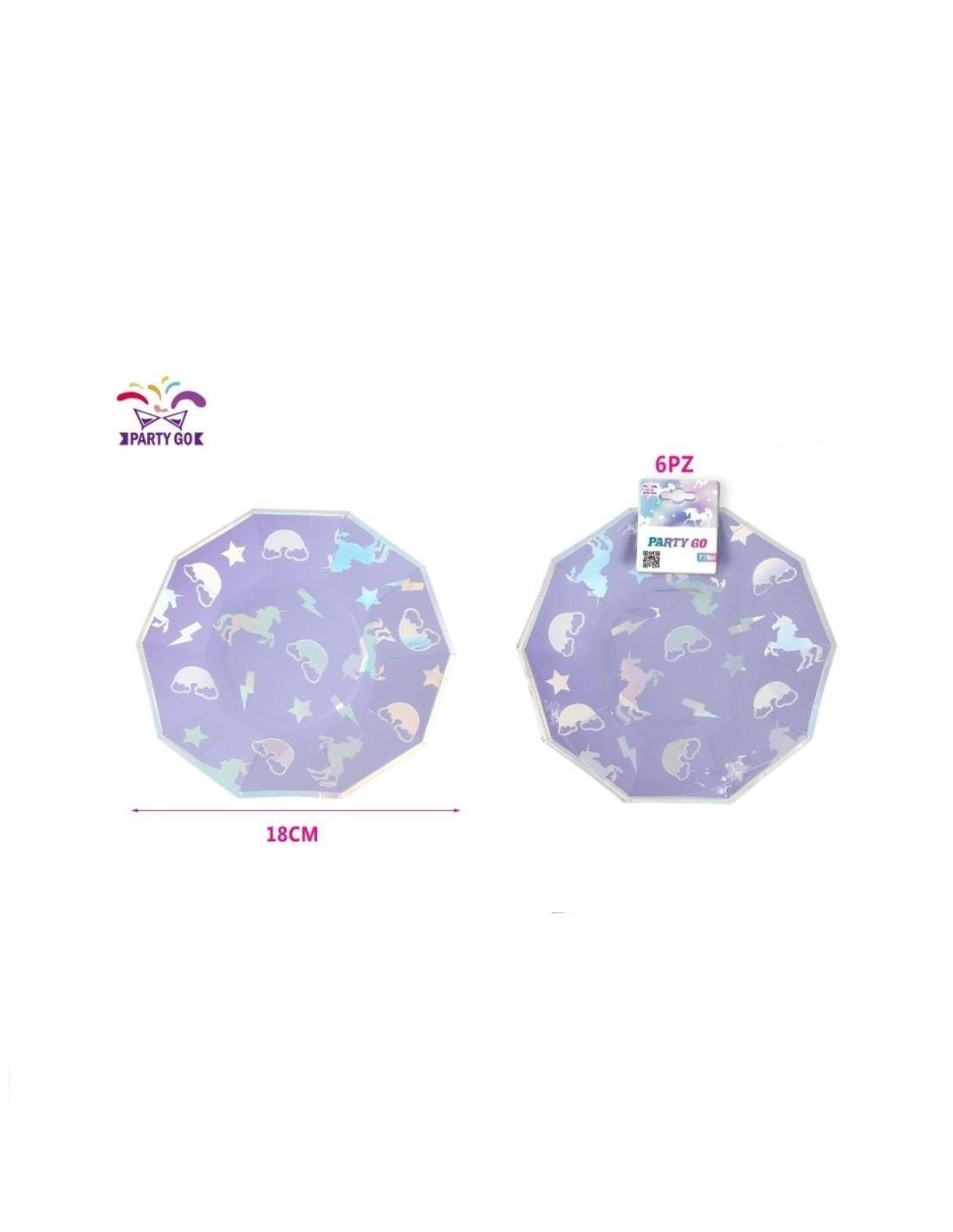 6 PIATTI VIOLA CON NUVOLE E UNICORNO 18 CM