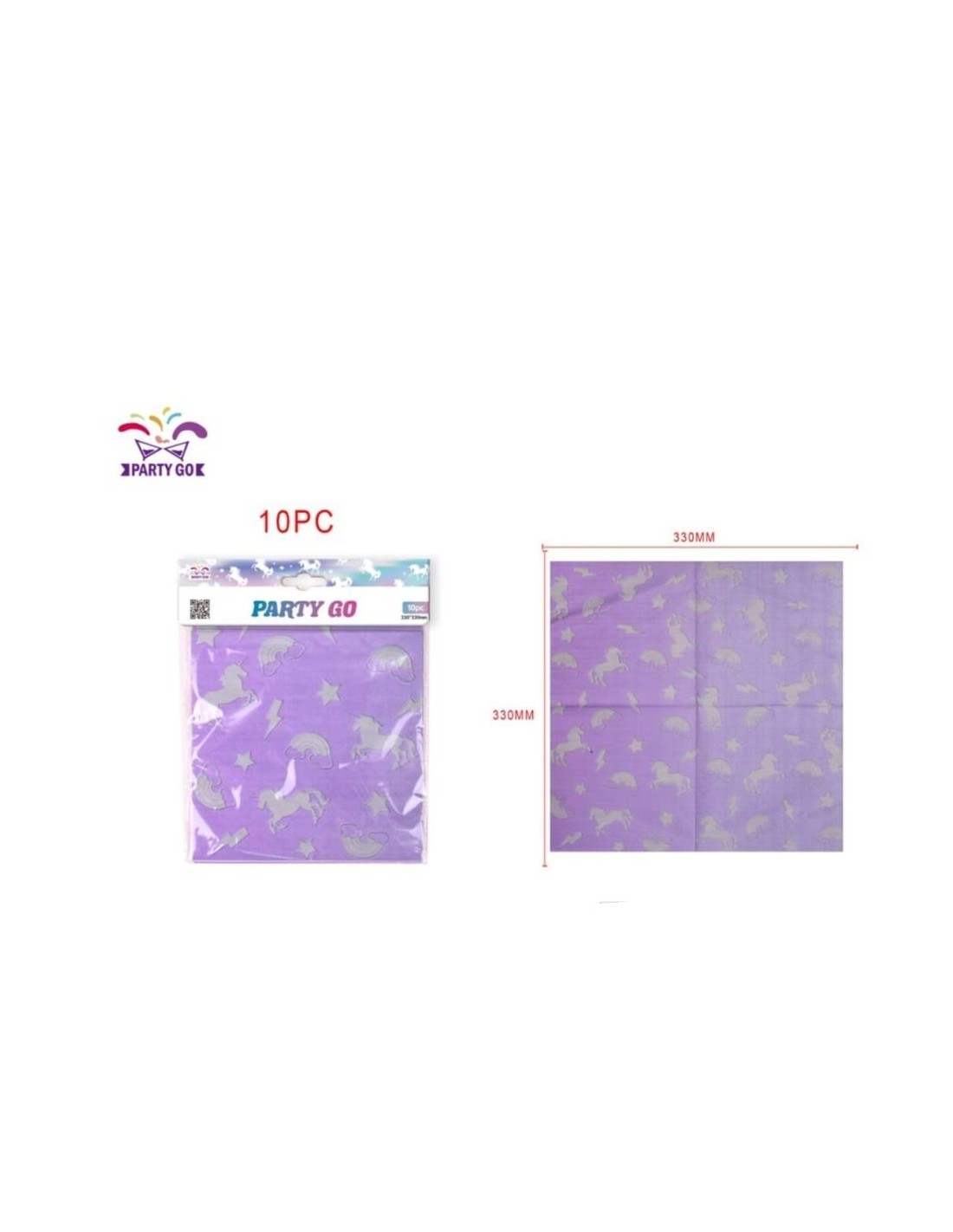 10 TOVAGLIOLI VIOLA CON NUVOLE E UNICORNO 33X33